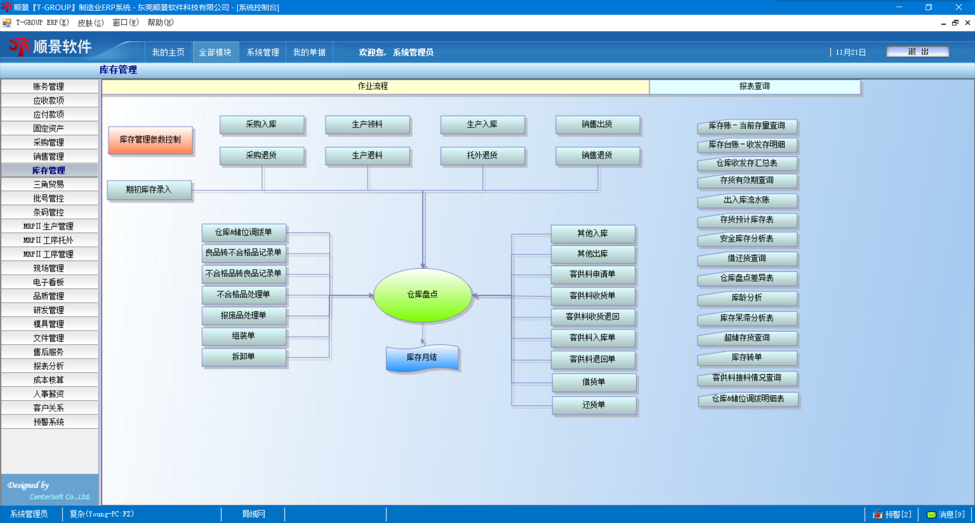 3.    存货盘点管理﹐可依仓库﹑储位﹑批号进行盘点,可进行盘点明细表,盘点卡打印;